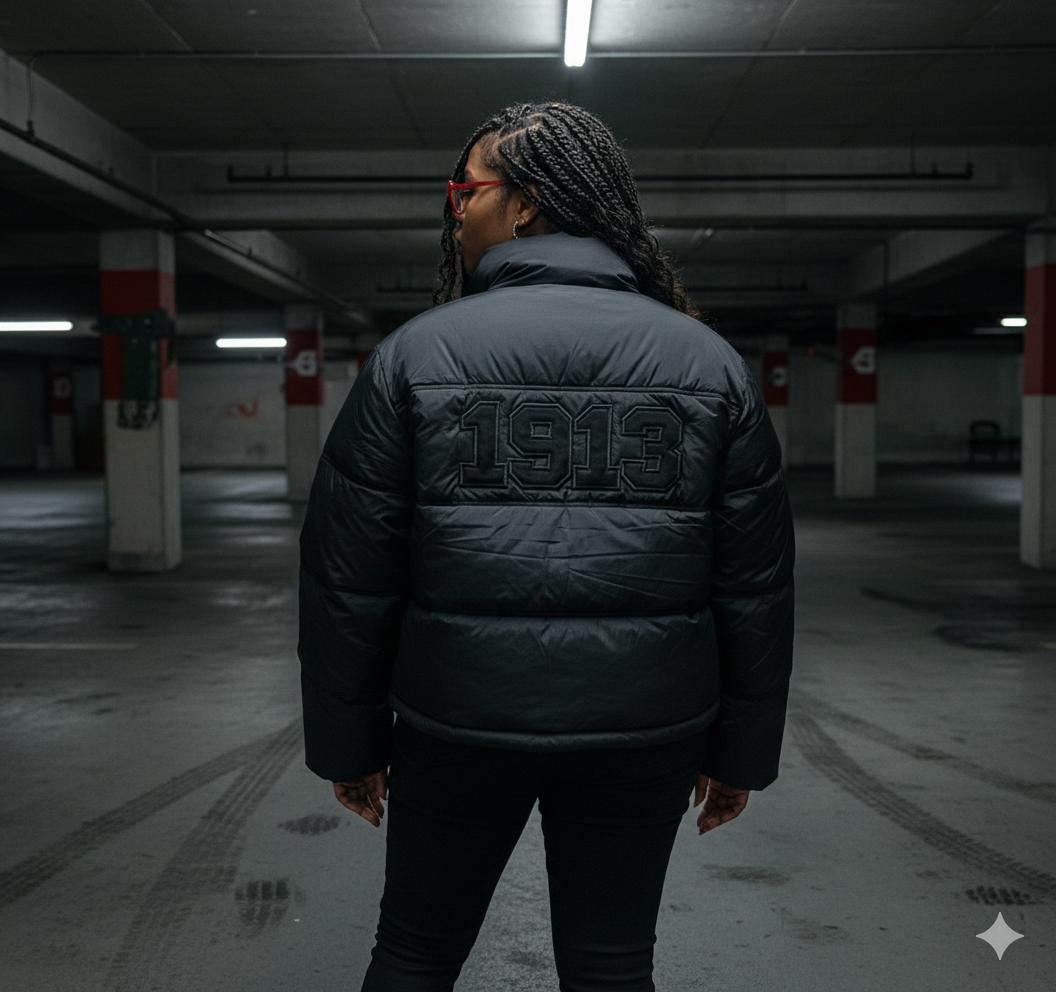 Stay warm and stylish with our DST Puffer Jacket in vibrant black! Made with 100% nylon shell. 100% polyester lining and fill material, this jacket boast embroidery on front and back. This jacket is a must-have for chilly days and adds a touch of glamour to any outfit.
